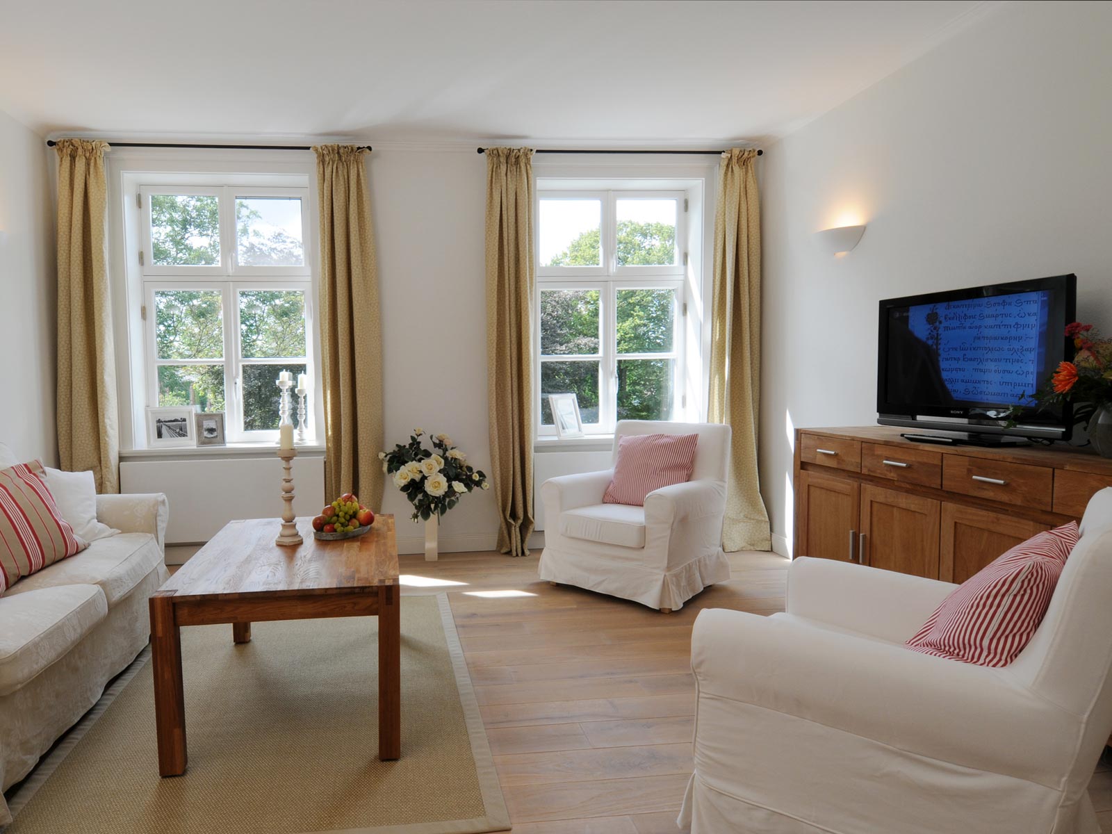 Alle Ferienwohnungen haben Radio/CD-Player, Fernseher SAT-TV und W-LAN.